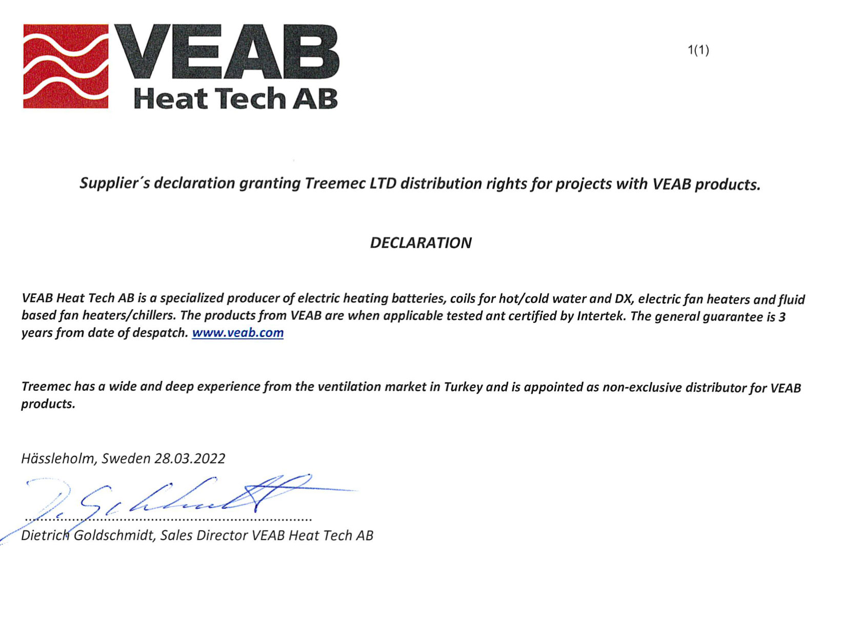 Treemec is proud to announce its official sales partnership with Veab, a globally recognized manufacturer of electric heaters and HVAC components. With this collaboration, Treemec will serve as a distributor of Veab products, offering reliable access to Veab’s innovative solutions across its network.